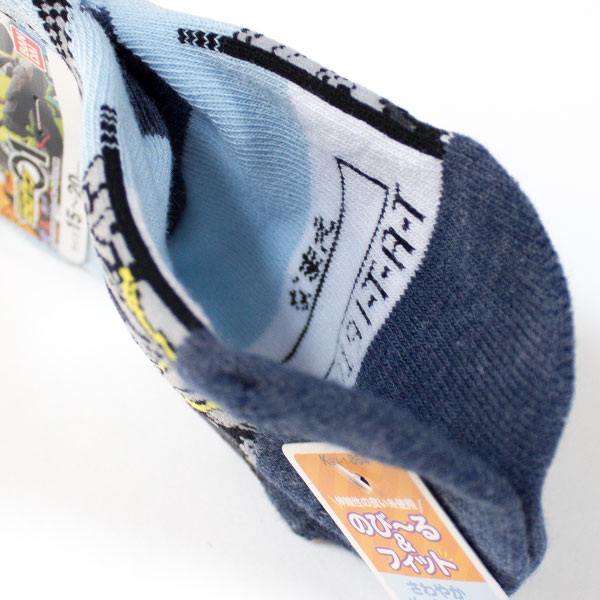 仮面ライダーゼロワン メッシュ編み スニーカーソックス 15-20cm メタルクラスタホッパー柄 背景水色 のび〜る&フィット靴下