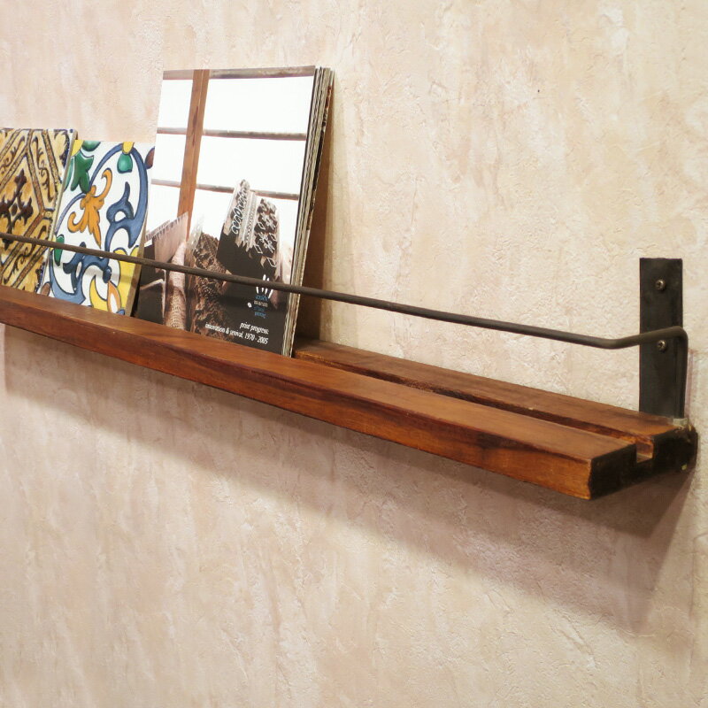 ロートアイアンと、木目の綺麗なシーシャムウッドを組み合わせた、ナチュラル、カントリー、アンティーク、どのインテリアにも馴染む、シンプルな壁掛棚。